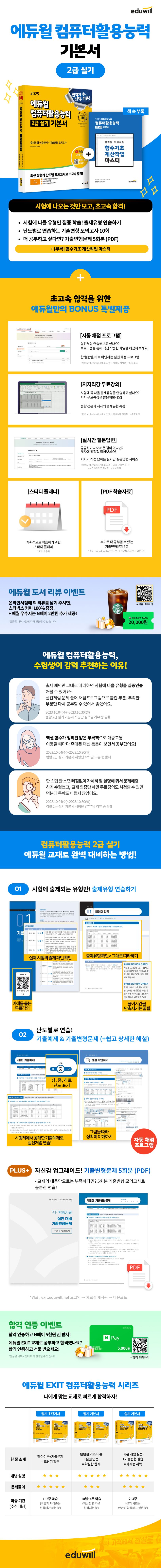 2025 에듀윌 EXIT 컴퓨터활용능력 2급 실기 기본서(ver. 2021) (출제유형 연습+기출변형 모의고사 | 동영상 강의 무료, 채점 프로그램)