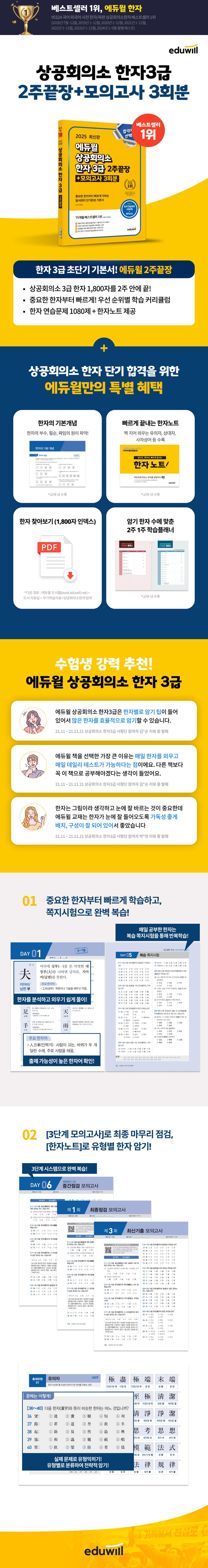 2025 에듀윌 상공회의소 한자 3급 2주끝장 + 모의고사 3회분