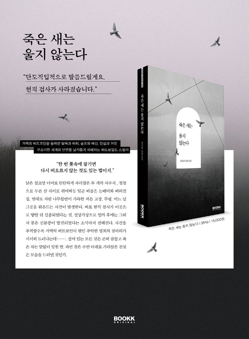 결코 적지 않은 분량이지만 압도적인 흡인력으로 이끌며 묵직한 존재감을 선보이는 소설, 《죽은 새는 울지 않는다》를 지금 만나보자.