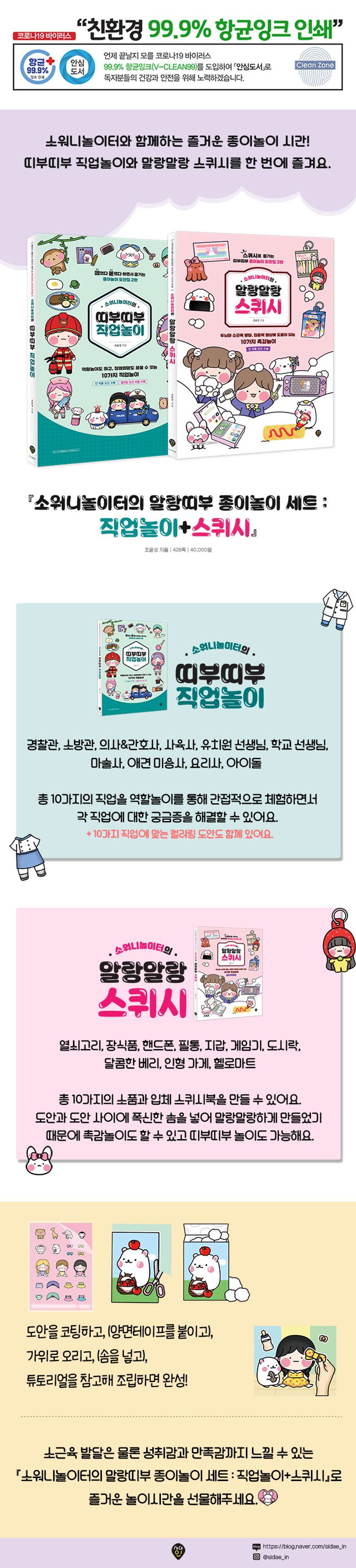 소워니놀이터의 말랑띠부 종이놀이 세트: 직업놀이+스퀴시 (띠부띠부와 스퀴시를 한번에 즐기는 종이놀이 도안집 | 전 2권)