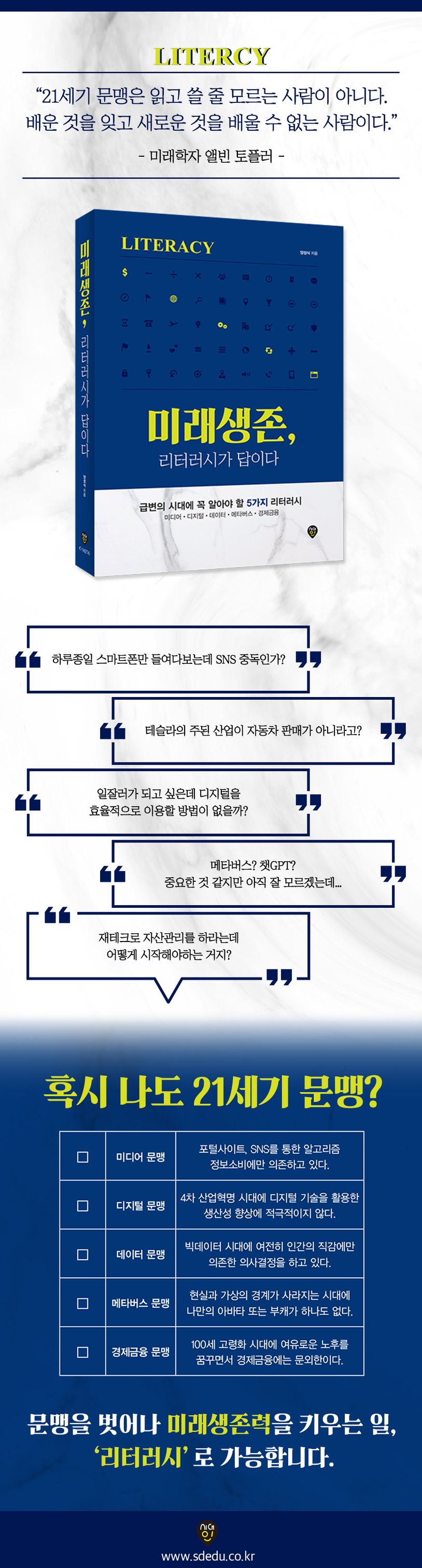 글을 이해할 수 있는 능력인 문해력(文解力)으로서의 리터러시는 최소한의 학업과 사회생활을 하기 위한 기본적인 능력일 뿐, 이것만으로는 복잡하고 빠르게 변화하는 세상에서 차별화된 경쟁력을 갖추기 어렵다.
