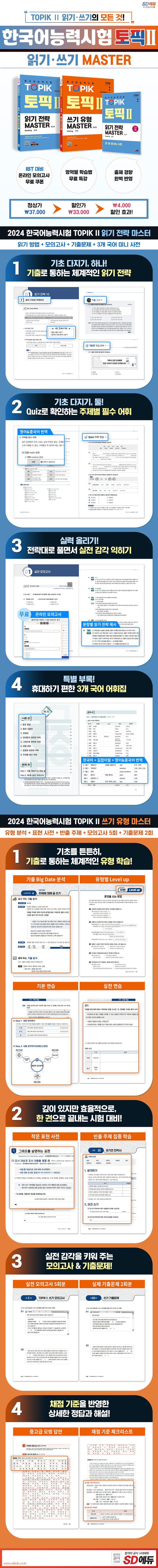 2024 한국어능력시험 TOPIK 2 읽기 쓰기 마스터 세트 (기출문제+한영중 미니사전 / 온라인 모의고사 / 모바일OMR 자동채점 | 개정판 2 판 | 전 2권)