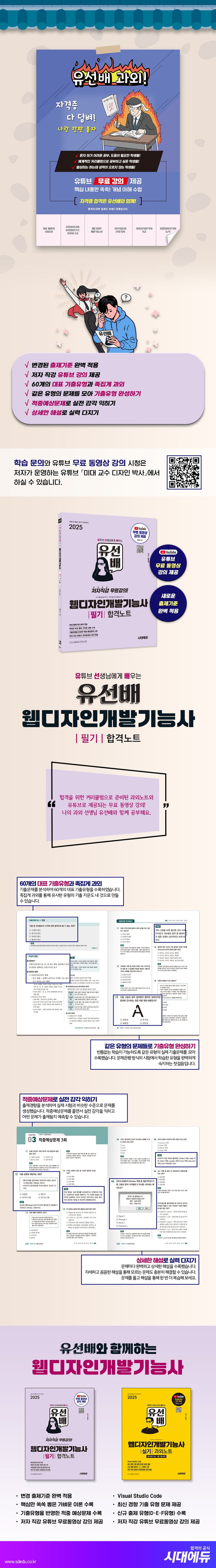 〈유선배 웹디자인개발기능사 필기 합격노트〉와 함께 2025년 웹디자인개발기능사 필기 합격의 주인공이 되어 보세요!