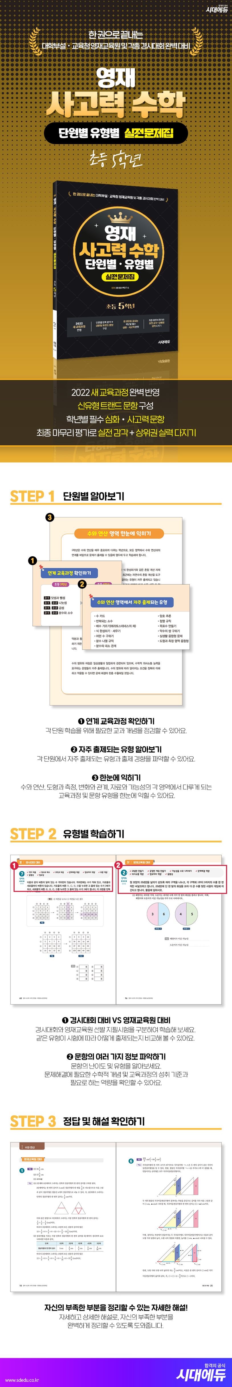『한권으로끝내는영재사고력수학단원별·유형별실전문제집』은다년간수학영재교육을연구하신클사람수학연구소의학습노하우를집약한도서입니다.본도서는한권으로각종수학경시대회와대학부설·교육청영재교육원지필시험을동시에대비할수있는최종마무리교재입니다.경시대회와영재교육원유형의문제를한번에아우를수있는경쟁도서가없다는점에서가장큰메리트가있습니다.도서는4단원(수와연산,도형과측정,변화와관계,자료와가능성)으로구성되었고,각단원별경시대회와영재교육원대비로유형이나뉘어져있습니다.『한권으로끝내는영재사고력수학단원별·유형별실전문제집』이학생들에게조금더쉽고,재미있게수학을접할수있는기회가되었으면합니다.이책이학생여러분들의수학여정에든든한동반자가되기를바랍니다.