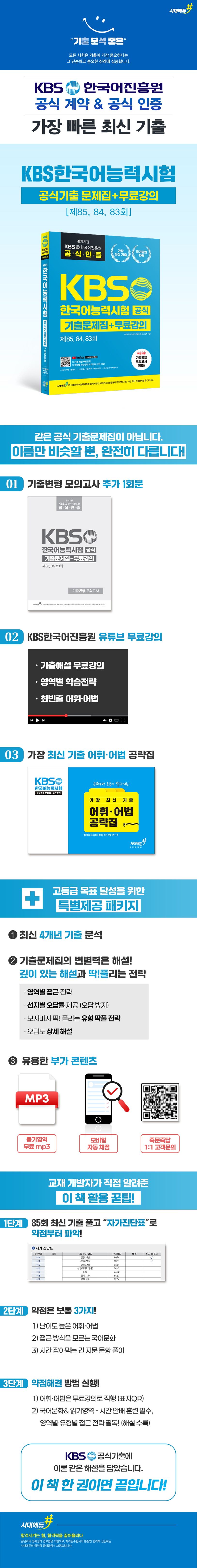 KBS한국어능력시험 공식기출 문제집+무료강의 [제85, 84, 83회] (출제기관 공식인증+기출변형 모의고사 1회+기출 해설 무료강의)