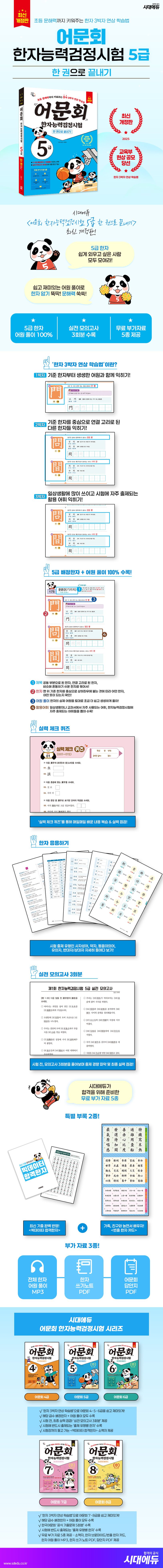 (www.sdedu.co.kr 접속 → 전체 메뉴 → 학습자료실 → 도서업데이트 → 〈어문회 한자능력검정시험 5급 한 권으로 끝내기〉 검색 → 첨부파일 다운로드)