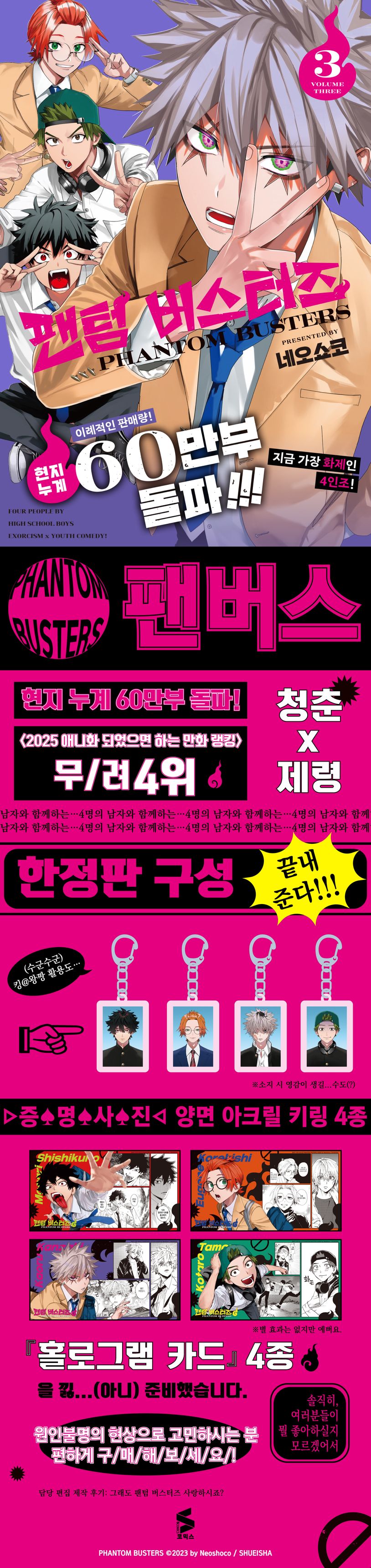 초판 한정 일러스트 카드(100*150mm), 플레이리스트풍 PP카드 2종, 팬텀 버스터즈 선전 포스터 1종