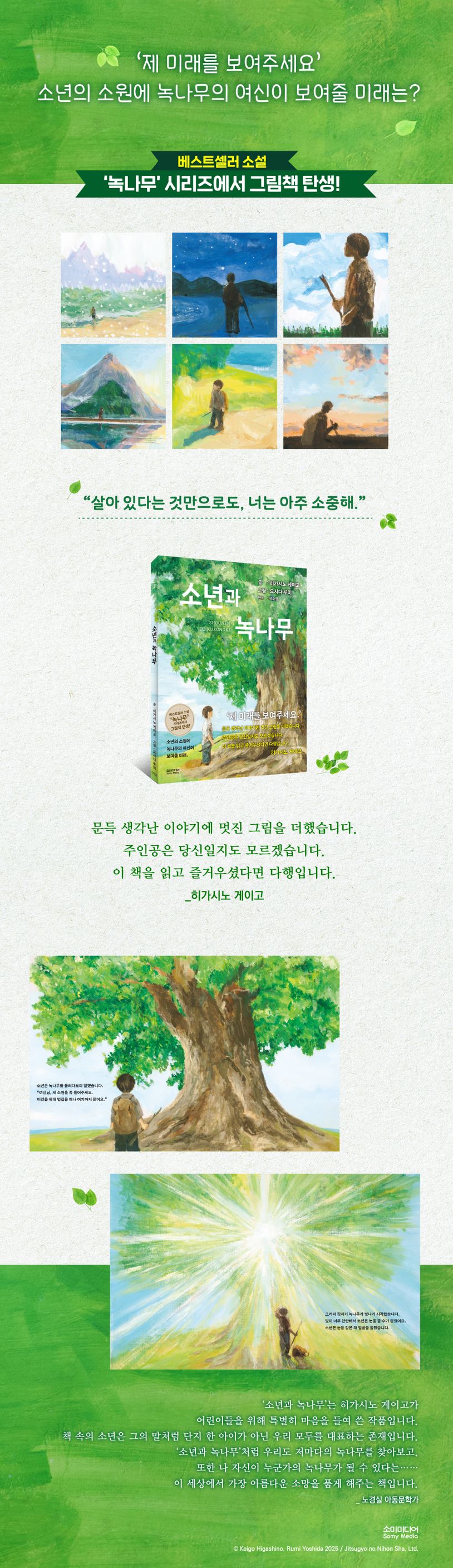 거듭된 불행으로 소중한 사람들을 잃어버린 소년은, 자신의 미래가 불안해서 울고 있었습니다. 그 모습이 걱정된 여행자는 미래를 보여준다는 녹나무의 여신을 만나러 가라고 일러주었지요.