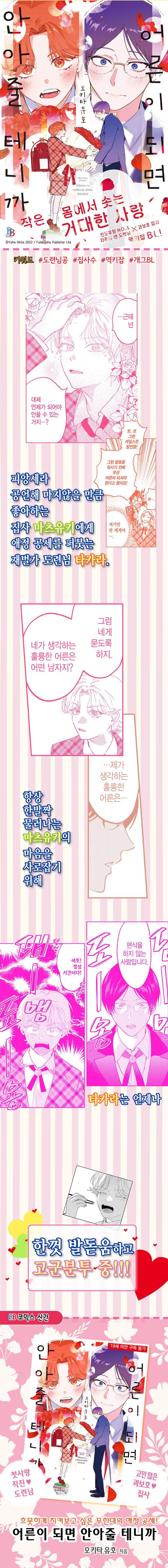 [현지반응]-초딩인데이미완성된슈퍼달링.작가님요즘작품이매우마음에듭니다.도련님은집사의마음을얻기위해나날이성장중!집사를동반한도련님을받아준학교도대단하고(웃음)귀여운에피소드가많습니다.좋아하는사람을위해분투하는도련님을흐뭇하게바라보게되네요.작가님다음작품도너무기대되고기다려져요.-굉장히재미있는데어째서눈물이하염없이흐를까요…?처음부터개그에터져서가족들이괜찮냐고물어볼정도로실컷웃었습니다.공은전형적인슈퍼달링스펙인데귀엽고사랑스럽고,수는미인이고,컷하나하나가귀여워서과호흡올뻔했어요.하지만후반에는눈물이줄줄이라또가족이걱정을….힘내라공!ㅠㅠ연하공이성장하는이야기,마음을좀처럼전하지못해안타까운이야기모두좋아하는데이작품이야말로최고네요.-쇼타공은좋은거구나!요즘유행인걸까요?도련님공에집사수이야기입니다.머리는좋지만이상한방향으로폭주하는도련님을보면웃음이나오면서도좀처럼닿지않는마음에가슴이살짝미어집니다.하지만너무너무귀여워요!전반은개그지만,후반은도련님이부쩍성장한모습을보여줘서설렙니다.갈등도있긴하지만해피엔딩이고귀엽고재미있어요!
