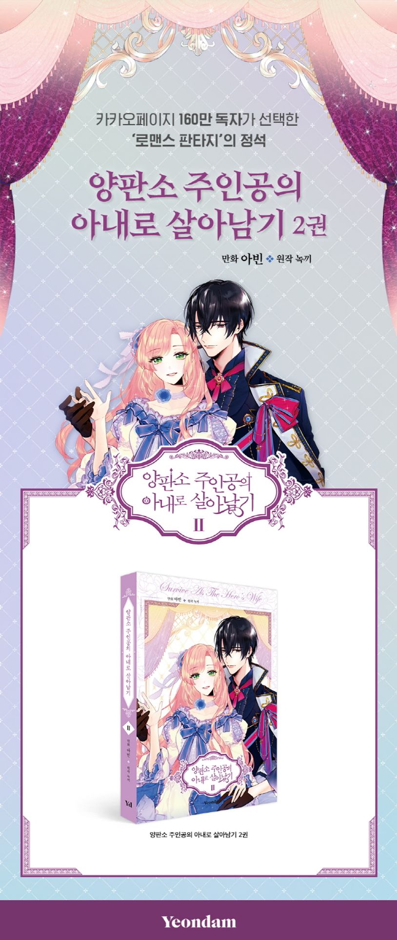 카카오페이지 로맨스 판타지 대표 웹툰 《양판소 주인공의 아내로 살아남기》2권이 출간되었다.