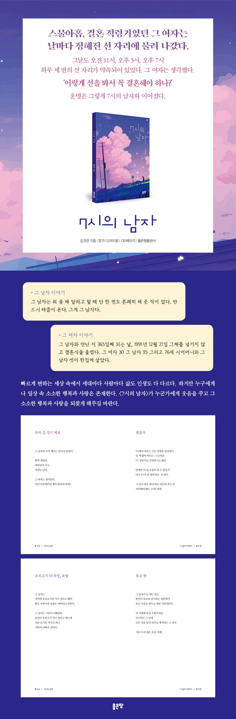 김조안 저자의 일상을 담은 자전적 에세이로 저자의 남편인 그 남자와 아내인 그 여자의 이야기를 유머러스하게 담아냈다. 늘 투닥거리고 화를 내면서도 그 속에 듬뿍 묻어 나오는 애정들을 일상의 언어로 표현해 누구나 쉽게 공감할 수 있다.