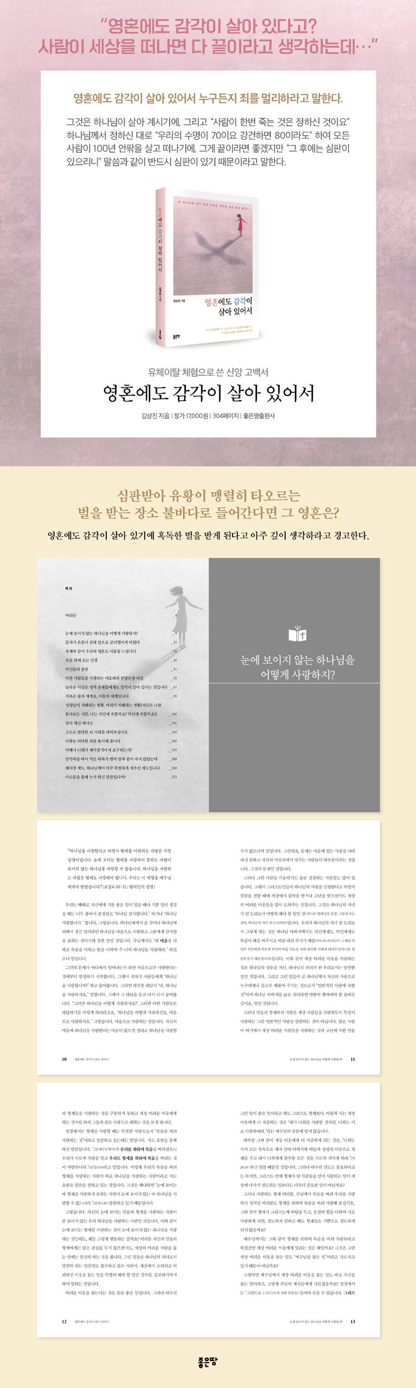 감각은 육체에만 속한 것이 아니라 영혼에도 살아 있다. 그래서 죽음은 끝이 아니고, 악한 자들에게는 끝없는 벌의 시작이 된다. 저자는 성경에서 말씀하는 악인, 의로운 일을 하지 않거나 형제를 사랑하지 않는 자, 허락함 없이 제사장직을 함부로 요구하는 자, 그분을 따르던 길에서 벗어난 자, 그분의 모든 명령을 무시하는 자, 은혜를 저버리는 자 등 죄짓는 행위를 제시하고 하루빨리 회개할 것을 촉구한다. 죄를 멀리하고 하나님 말씀을 따르면 성령께서 내 안에서 일하시게 된다. 성령의 일하심을 통해 하나님 나라의 올바른 일꾼이 될 것을 책에서는 역설하고 있다.