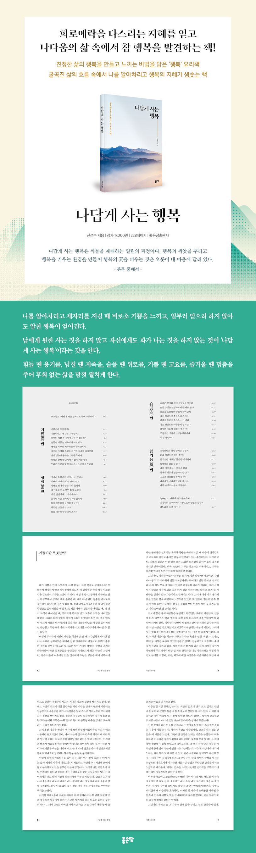 노자의 《도덕경》을 바탕으로 희로애락을 다스리고 나답게 살아가는 행복을 찾아가는 책이다. 기쁨, 성냄, 슬픔, 즐거움 4가지 감정을 테마로 각각의 감정을 슬기롭게 다스리는 방법을 논한다. “감관의 자연스러운 여닫음에 마음이 휘둘리지 않게 할 수 있는가?”라는 말처럼 감정은 외부 세계와 소통하며 일어나는 자연스럽고, 일시적인 현상이다. 따라서 감정 하나하나에 연연할 필요가 없으며 내 마음을 들여다보며 나다움을 찾아가야 한다.