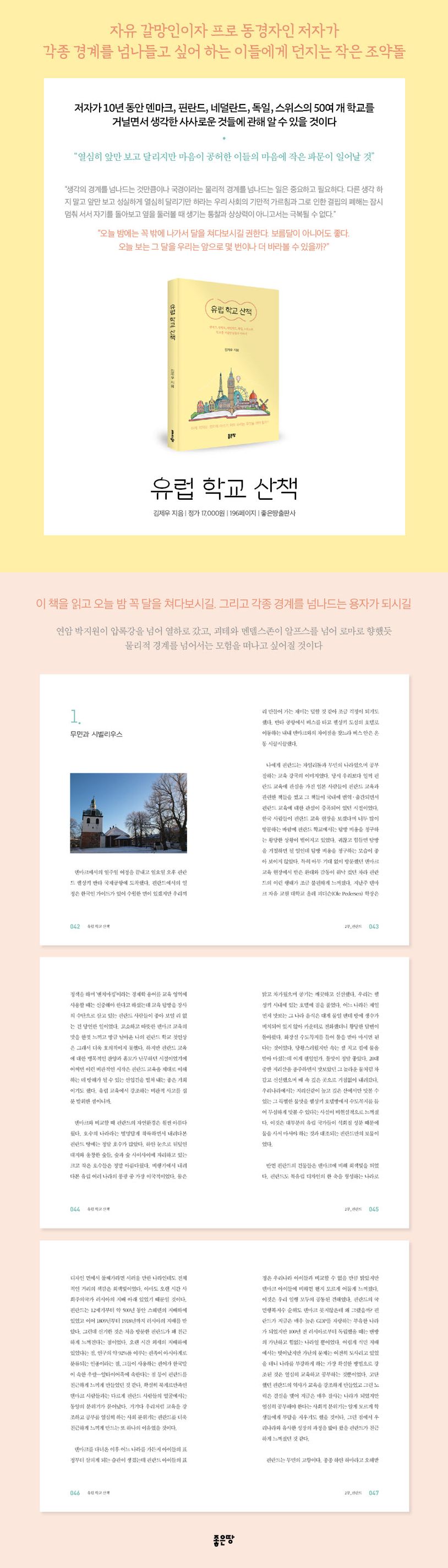 이 책은 저자가 지난 10년 동안 덴마크, 핀란드, 네덜란드, 독일, 스위스의 학교를 50차례 이상 방문하고 각 나라의 몇몇 도시들을 여행하면서 보고 듣고 느낀 것들에 대한 사사로운 기록이다. 마틴 스콜세지 감독의 말처럼 가장 개인적인 것이 가장 창의적인 것이라는 믿음으로 사사로운 이야기를 세상에 내놓는다.