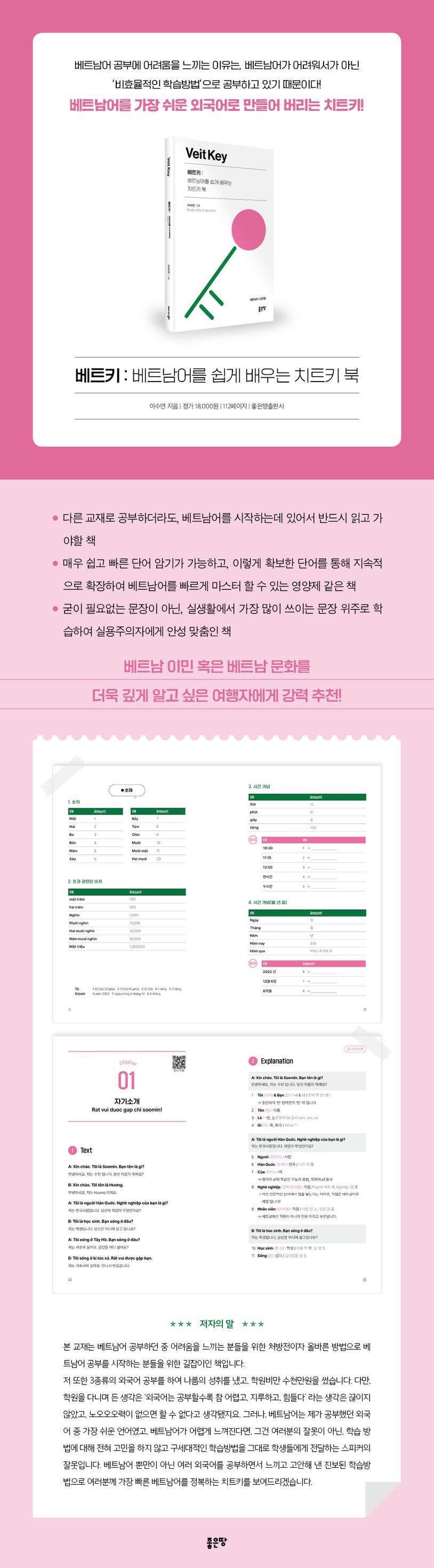 언어 자격 시험을 위한 교재라기보단, 베트남어에 대한 기초 감각을 빠르게 잡아주는 교재라고 생각하시면 될 것 같습니다.
