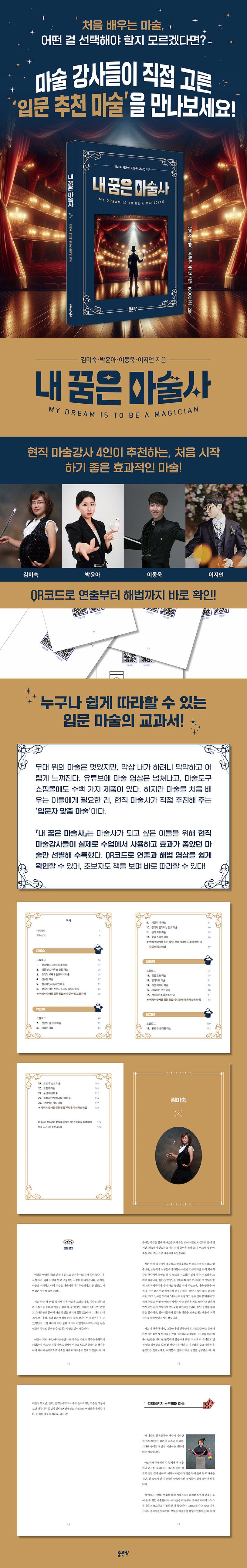 『내 꿈은 마술사』는 마술에 첫 발을 내딛는 아이들과 청소년을 위한 따뜻한 마술 입문서입니다. 현직 마술사들이 직접 쓴 이 책은 마술의 기초 기술부터 무대에서의 연출, 공연 준비까지 실전 경험을 바탕으로 친절히 안내합니다. 단순한 기술 전달을 넘어, 마술의 매력과 그 이면의 노력, 그리고 관객과의 소통까지 아우르며 마술의 본질을 전합니다. 누구나 따라 할 수 있는 마술과 함께 실제 공연 멘트와 팁까지 수록되어 있어 실용성도 높습니다. 마술을 통해 자신감을 키우고 싶은 아이들에게 이 책은 든든한 길잡이가 되어 줄 것입니다. 마술을 배우며 꿈을 키우는 여정을 응원하는 따뜻한 메시지가 가득한 책입니다.