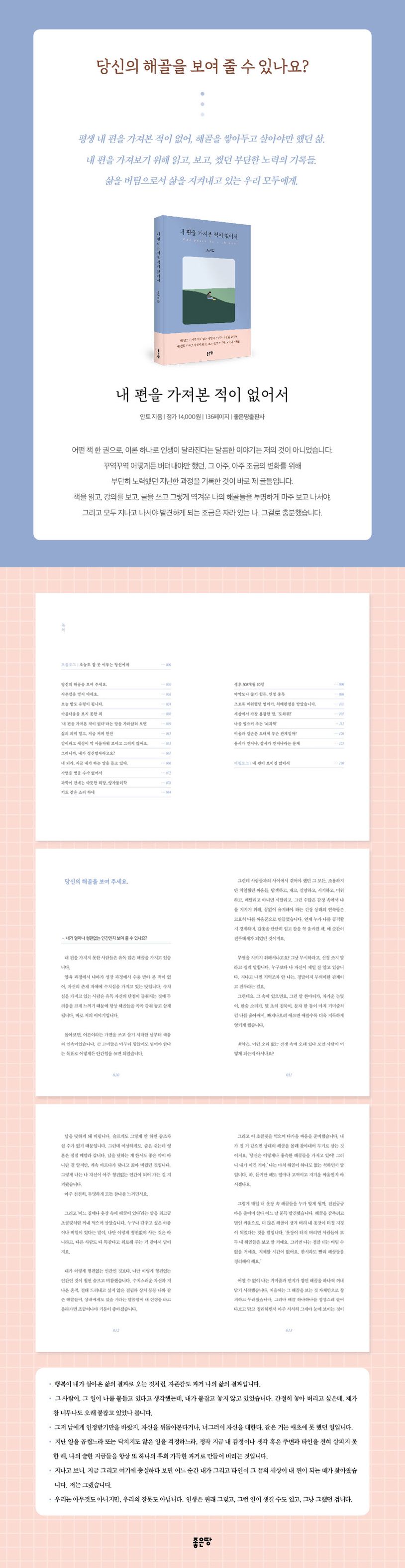내 편을 가져보지 못한 사람이 내 편을 가져보고 싶어서 내 편 좀 되어 달라고 이 기록을 시작했습니다. 그리고 내 형편없는 기록이 누군가에게 한 점 위로가 되기를 혹 그렇게 된다면 서로가 서로에게 어느 한 순간이라도 내 편이 되어 줄 수 있기를 바라며 조심스레 손을 내밀어 봅니다.