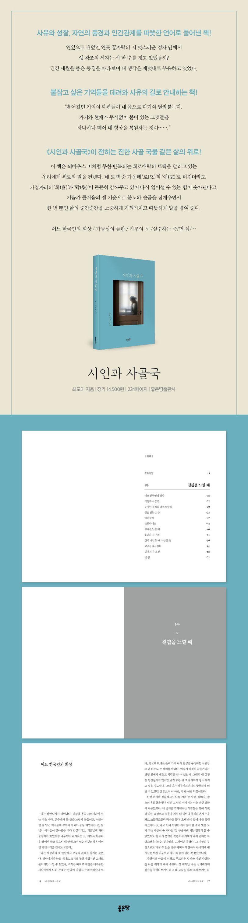 『시인과 사골국』은 사유와 성찰, 그리고 삶의 의미를 탐구하는 과정이다. 글을 통해 지나온 순간들을 되짚고, 내면과 외부 세계를 연결하며, 평범한 하루하루 속에서도 깊은 울림과 삶의 가치를 느끼게 한다. 『시인과 사골국』은 독자에게 일상의 순간들을 새롭게 바라보는 시선을 선물하는 에세이다.
