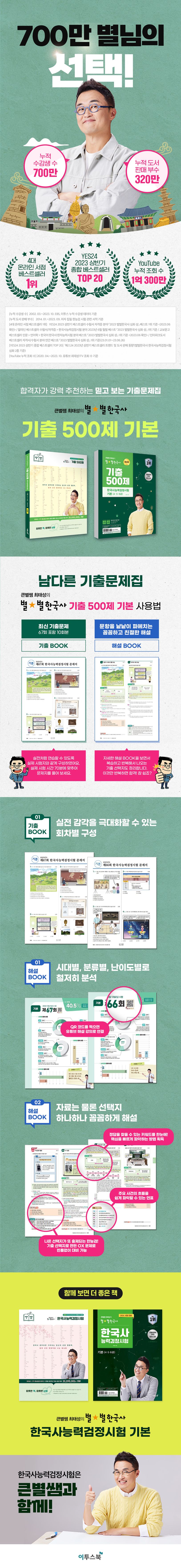 〈큰별쌤 최태성의 별별 한국사 기출 500제 한국사능력검정시험 기본(4,5,6급)〉은 기본 67회를 포함하여 총 10회분 500문항으로 구성되었습니다.