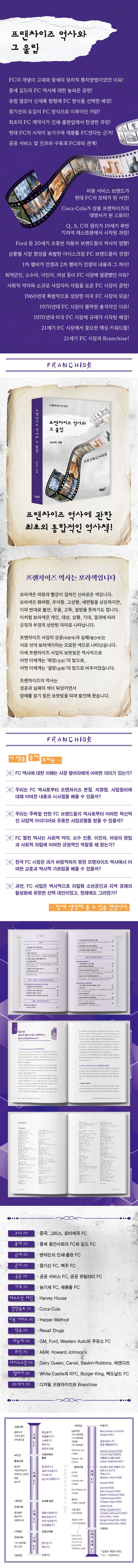 15부 36장으로 구성된 본 책은 고대부터 현대까지의 프랜차이즈 역사에 대한 개념, 내용, 특징, 그리고 역사적 교훈을 시대적 구분에 따라 대상과 주제별로 설명하는 역사책입니다.