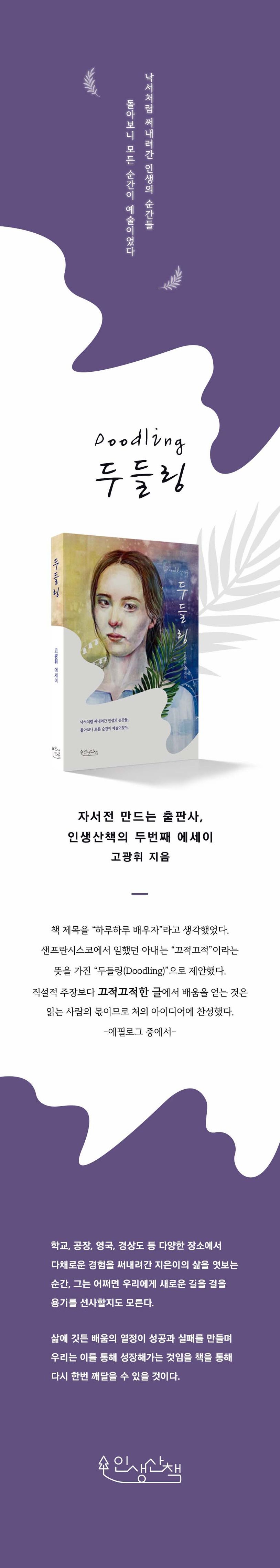 지은이의 지나온 인생의 기록을 담은 책 『두들링』은 과거를 돌아보며 담당하게 자신의 인생 이야기를 들려준다. 자신만의 이야기일 수도 있지만, 어쩌면 그 시대를 지나왔던 우리 모두의 이야기일 수도 있다. 그래서 이 책은 우리에게 이제는 닿을 수 없는 시절의 아련한 추억을 불러다 준다.