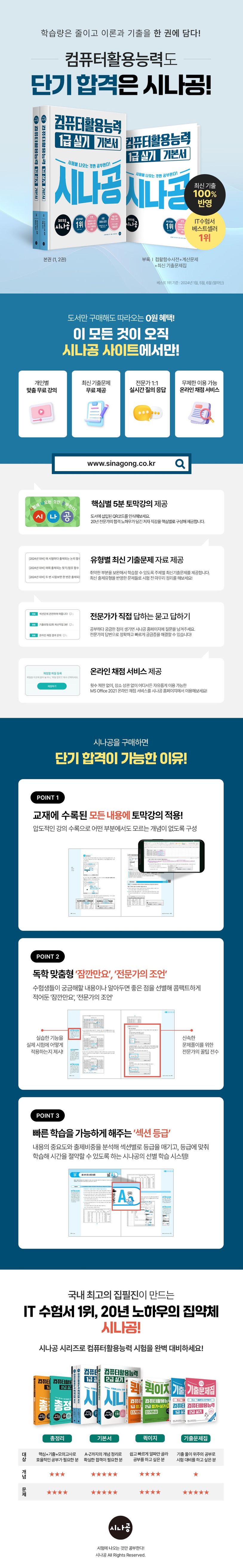 - 꾸준히 업데이트되는 최신 자료: 시나공 홈페이지(sinagong.co.kr)에서 핵심요약집, 최신기출문제 등 시험에 필요한 자료를 확인할 수 있습니다.