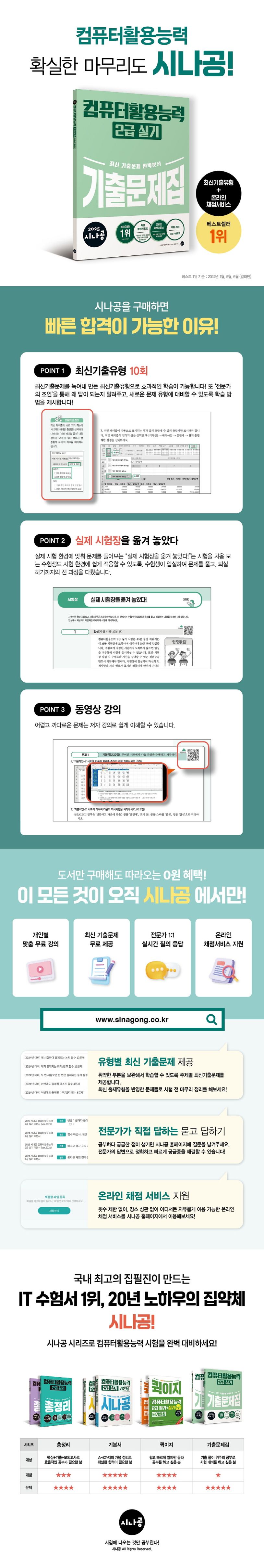 - 꾸준히 업데이트되는 학습 자료: 시나공 홈페이지(sinagong.co.kr)에서 최신기출문제, 실기특강 등 시험에 필요한 자료를 확인할 수 있습니다.