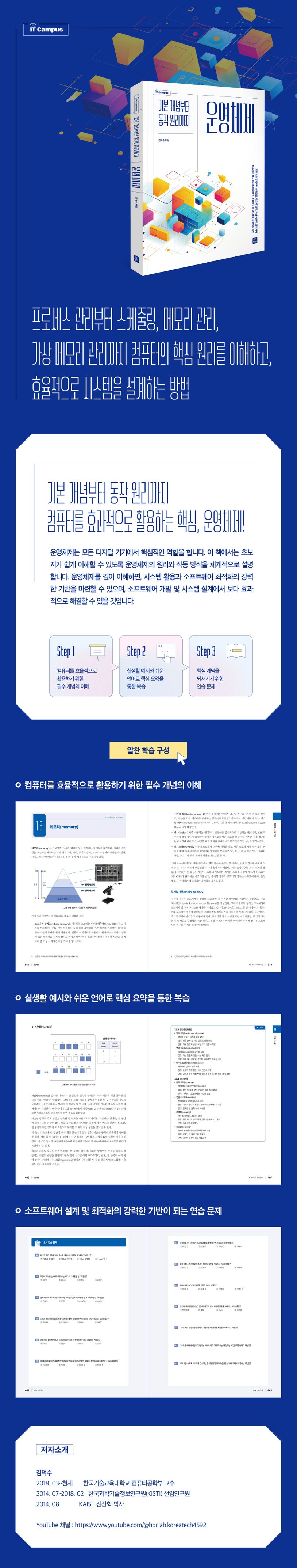 《기본 개념부터 동작 원리까지 운영체제》는 우리가 매일 사용하는 스마트폰, 컴퓨터, 서버가 모두 운영체제 위에서 돌아가며, 그 원리를 이해하는 것이야말로 컴퓨터를 효과적으로 사용하는 것이라고 말합니다. 이 책은 처음 운영체제를 배우는 독자들이 프로세스 관리, 메모리 관리, 가상 메모리와 같은 필수 주제와 개념을 쉽게 이해하고 기술적이고 난해한 개념을 단계적으로 이해할 수 있도록 구성하였습니다.