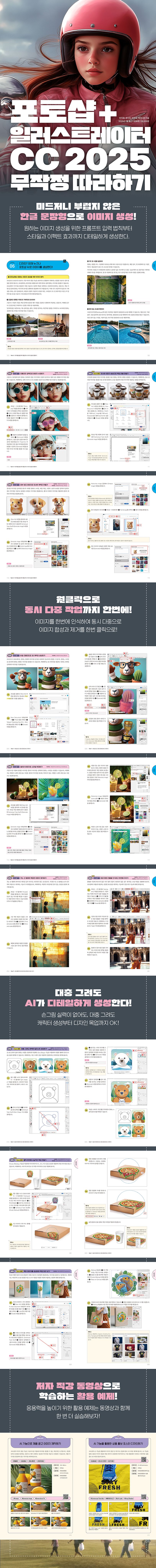 포토샵+일러스트레이터 CC 2025 무작정 따라하기에서는 초보자의 눈높이에 맞게 재미있고 쉽게 배울 수 있도록 AI 기능을 소개하고 있으며,