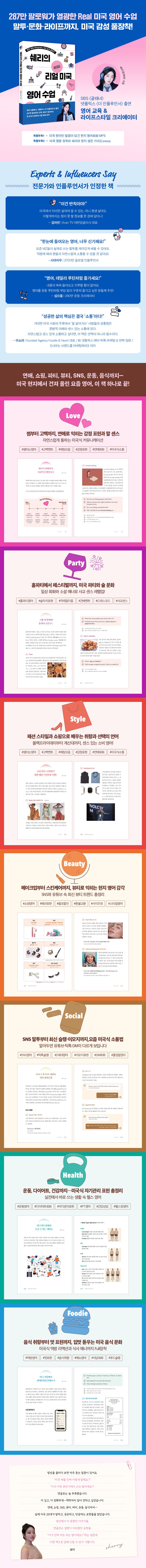 《쉐리의 리얼 미국 영어 수업》은 교과서 문장이나 시험용 영어가 아닌, 미국 20대가 실제로 쓰고 반응하는 생생한 언어를 담았다. 연애, 파티, 쇼핑, 뷰티, SNS, 운동, 음식 등 7가지 테마를 따라가며 ‘썸 탈 때 쓰는 고백 멘트’, ‘홈파티 술게임’, ‘SNS 줄임말과 Z세대 슬랭’, ‘헬스장에서 오가는 대화’, ‘먹방 리액션과 식사 매너’까지-짧은 영상으로는 다 보여주지 못했던 현지 소통의 감각을 책으로 만날 수 있다.