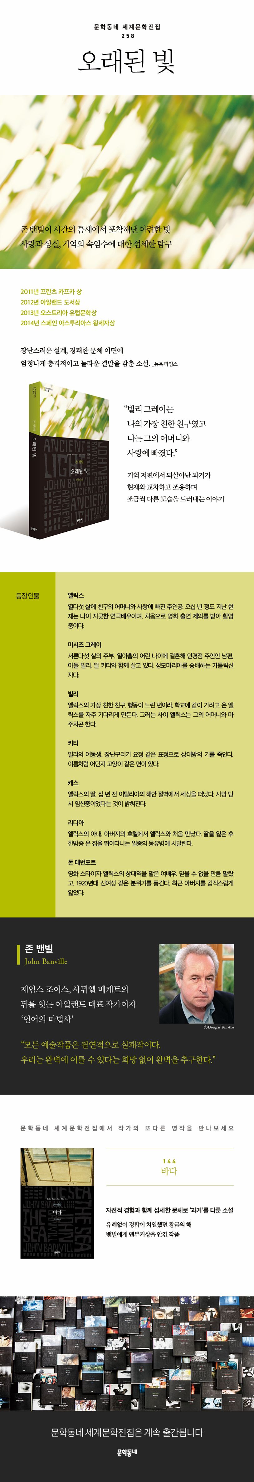 아일랜드를 대표하는 작가이자 ‘언어의 마법사’로 불리는 존 밴빌이 사랑과 상실, 기억이라는 주제로 장편소설을 발표했다. 전작 『이클립스』 『수의』에도 등장했던 앨릭스 클리브와 캐스 클리브 부녀(父女)가 다시금 등장하는 『오래된 빛』이다.