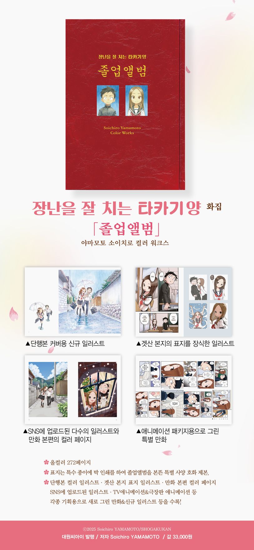 저자:야마모토소이치로 5월30일생.2011년9월제27회겟산신인상가작수상.12월제69회신인코믹대상가작수상.만화잡지《월간소년선데이》에단편《연애편지》로데뷔한뒤,《장난을잘치는타카기양》을연재하고있다.
