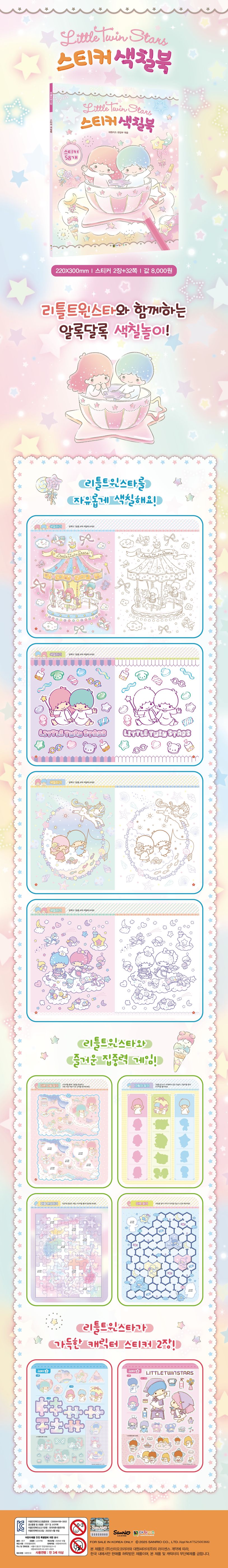 사랑스러운 리틀트윈스타의 다양한 모습을 자유롭게 색칠해 보세요. 여러가지 테마의 리틀트윈스타 색칠놀이가 가득! 리틀트윈스타를 예쁘게 색칠하고 재미있는 게임으로 집중력과 사고력도 UP! UP! 게임과 함께 즐길 수 있는 리틀트윈스타 스티커도 2장 들어있어요.