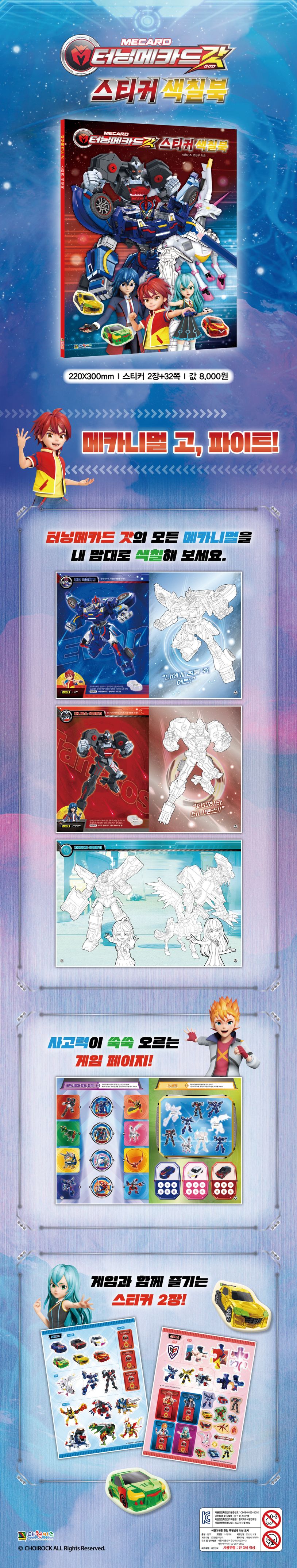 에반과 타나토스, 미리내와 테로까지! 터닝메카드 갓을 색칠 놀이로 만나 보세요. 보기의 그림을 보고 똑같이 색칠해도 좋고, 내가 색칠하고 싶은 색깔로 칠해서 나만의 메카니멀로 만들어 봐도 좋아요. 색칠 놀이와 함께 구성된 게임 페이지를 통해 사고력을 키우고, 함께 즐기는 2장의 스티커를 붙이며 표현력과 창의력을 키워 보세요.