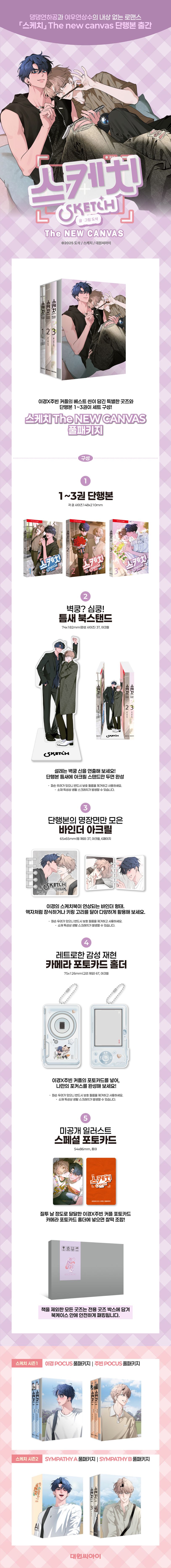 풀패키지에는 『스케치 The new canvas』 1-3권과 이경×주빈의 베스트 씬이 담긴 특별한 굿즈가 담겨 있다.