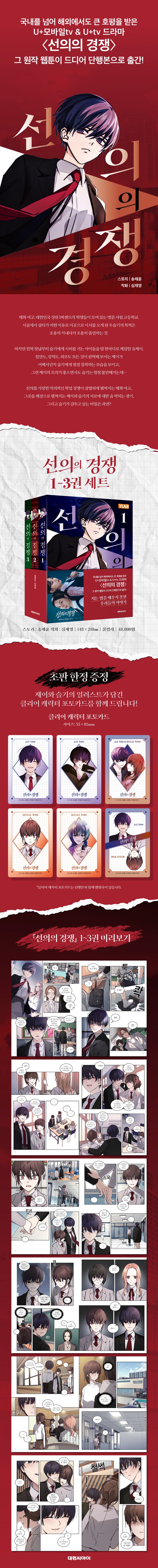 ※ 『선의의 경쟁 1』에는 웹툰 1-13화, 『선의의 경쟁 2』에는 웹툰 14-26화, 『선의의 경쟁 3』에는 웹툰 27-39화의 내용이 포함되어 있습니다.