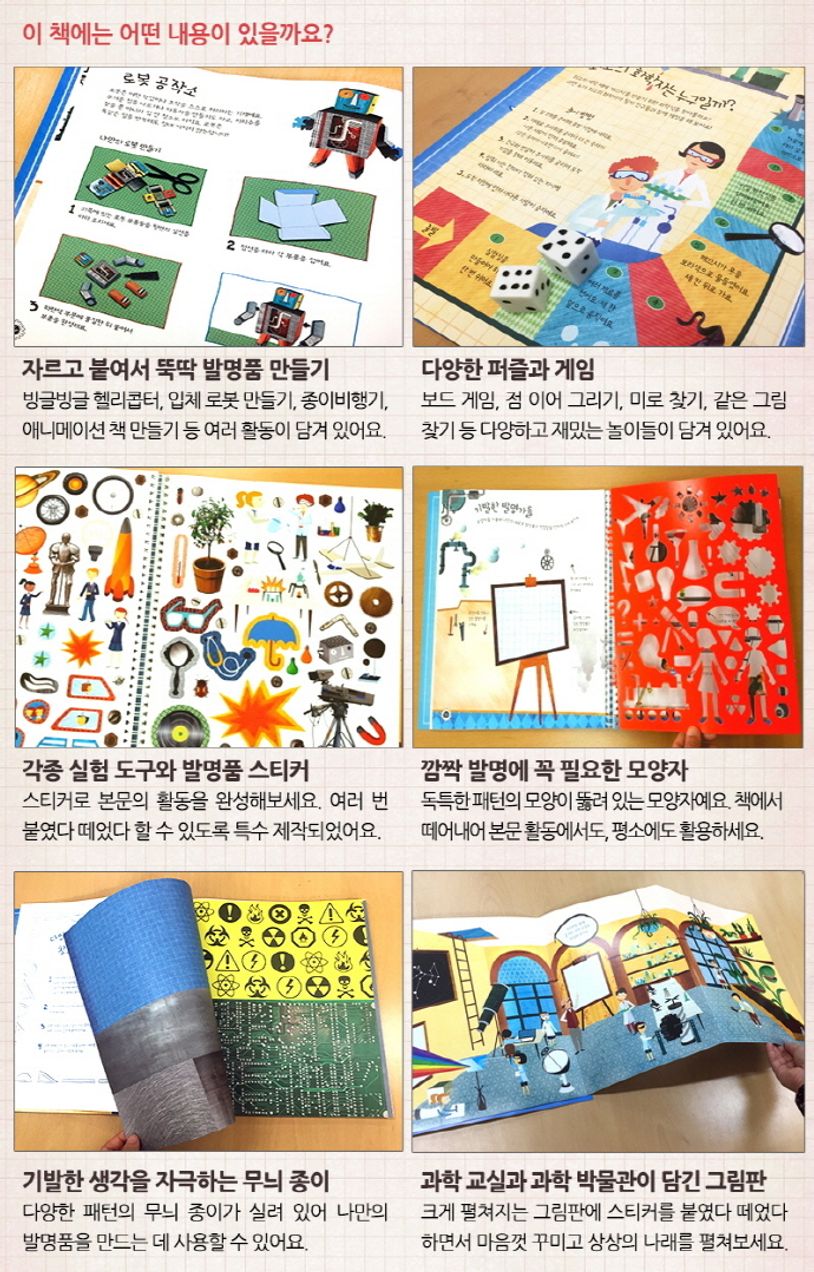 『지식이 번쩍! Creativity Book 깜짝 발명』에는 세상의 모습을 바꾸고 인류 역사의 발전에 기여한 위대한 발명·발견과 그 속에 감춰진 놀라운 과학 원리가 흥미롭게 담겨 있다. 이동 수단의 혁신을 가져온 바퀴의 발명과 각종 탈것의 역사, 천문학자들이 망원경으로 관찰해 밝혀낸 은하계의 신비, 의학의 발전에 크게 기여한 뢴트겐의 엑스선, 너무 당연하게 여기지만 일상 생활에서 없어서는 안 될 스테이플러, 고무줄, 지우개에 이르기까지 기발하면서도 창의적인 발명·발견 이야기를 읽을 수 있다.