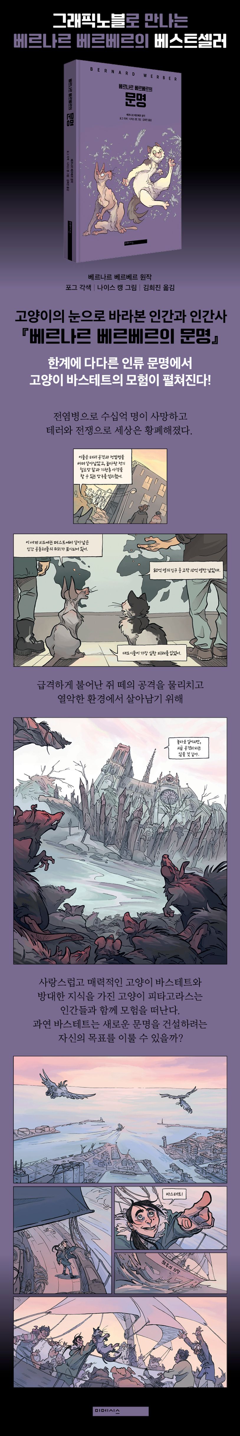 전 세계적 베스트셀러 작가 베르나르 베르베르의 소설 『문명』을 그래픽 노블로 옮긴 『베르나르 베르베르의 문명』이 미메시스에서 출간되었다. 작가는 직접 각색가 포그, 그리고 삽화가 나이스 캥을 선정하여 그들과 함께 『고양이』, 『문명』, 『행성』으로 이어지는 「고양이 시리즈」를 작업해 오고 있다. 각각의 작품은 독립적으로 읽어도 전혀 지장이 없을 만큼, 저마다 탄탄한 구성과 전개를 자랑한다.