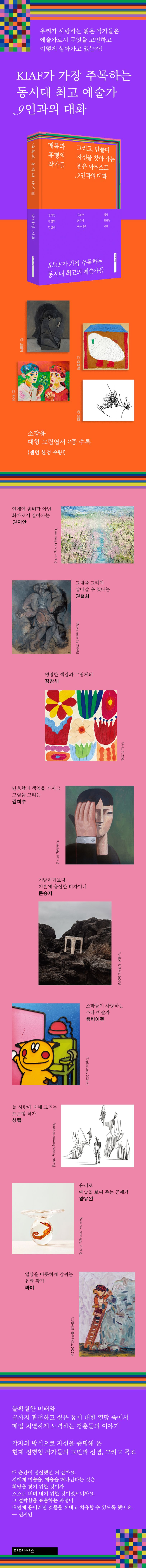 패션 매거진 『노블레스』의 디지털 디렉터 남미영이 동시대 젊은 아티스트들을 만나 솔직하게 삶과 작품에 관해 이야기를 나누고 그 속마음을 들여다본 인터뷰집이 미메시스에서 출간되었다. 고유한 스타일로 그림을 그리고, 작품을 만들며 자신을 찾아 가는 청춘들을 소개하는 『매혹과 흥행의 작가들』은 현재 KIAF가 가장 주목하며 전 세계적으로 흥행을 성공시키는 젊은 아티스트 9인과의 대화를 빼곡히 담았다. 권지안, 권철화, 김참새, 김희수, 문승지, 샘바이펜, 성립, 양유완, 콰야는 각각 회화 작가로, 일러스트레이터로, 디자이너로, 유리 공예가로 활동하고 있다. 오랫동안 잡지 에디터로 수많은 사람을 만나 온 남미영은 〈예술을 업으로 하는 청춘의 불안〉을 이해하고 싶었다. 용감하다고 생각했고, 대단하다고 느꼈다. 정작 9인과 대화를 시작하자 자신과 다르지 않은 고민을 하고 있었지만, 창작자의 천성 탓인지 더 깊이 더 열심히 그 고민을 정제하고 있었다. 불확실한 미래와 끝까지 관철하고 싶은 꿈에 대한 열망 속에서 매일 치열하게 노력하는 그들과의 대화를 혼자 간직하기 아까웠다. 거장의 가르침처럼 명확한 길을 제시하지 않지만, 그래서 더 공감하고 감동하였다. 예술을 하지 않아도 현재 진행형의 청춘은 모두 불안하다. 그렇기에 인터뷰어 남미영은 꿈을 갖고 살아가거나 꿈을 찾고 있는 사람이라면 누구나 한 번쯤 가슴이 울렸을 찰나의 대화를 그러모아 글로 남겼다. 그녀는 말한다. 매거진의 인터뷰어로 짧지 않은 시간 일을 하면 좋은 인터뷰 후에는 습관처럼 하는 말이 있다고. 「이 인터뷰의 최대 수혜자는 바로 〈나〉야.」 길어야 4쪽이 채 되지 않는 짧은 배당 페이지 안에서 좋은 인터뷰이와의 좋은 대화를 축약해 넣으려면 취사선택이 필요하다. 결국 어떤 작가를 만나면 그들의 최근 전시에 한정하거나, 최근 작업에 한정한 이야기로 마무리된 글을 세상에 내보냈지만, 사실은 그 뒤에 실리지 못한 보석 같은 이야기를 혼자 소중히 간직하는 것이 은근히 좋으면서도 아까웠다고 밝힌다. 다른 이들에게도 들려주고 싶다는 마음이 커질 때쯤 이 인터뷰를 기획하게 되었고, 이렇게 책으로 엮어 세상에 내놓았다. 무엇보다 사진작가 김혜수와 김수민이 담아낸 아티스트들의 공간과 작업실에서의 아름다운 모습, 그리고 작가들의 대표 작품들이 실려 있어 하나의 사진집으로 혹은 작품집으로 간직할 수 있다.