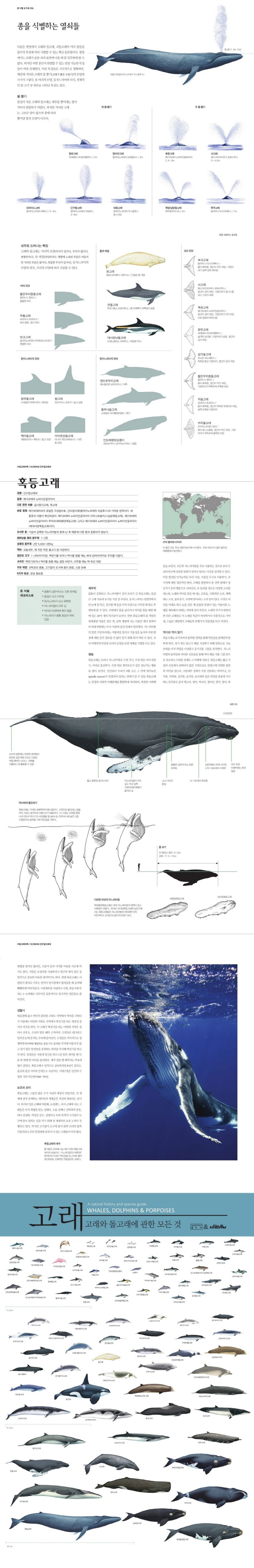 『고래』는 고래의 가장 흥미로운 부분만을 모아 소개한 책으로, 지구상에 살아 있는 약 90종의 자세한 프로필과 특성을 한 권에 모두 살펴볼 수 있다. 고래류가 어디에서 기원했고 어떻게 진화해왔는지, 고래류의 성장과 번식, 고래가 사는 장소와 이동 패턴 등을 다룬다. 이빨고래류의 고도로 복잡한 사회에서부터 혼자 사는 종에 이르기까지 고래류의 사회적 조직에 대해 집중적으로 살펴보며, 멸종 위기에 처한 몇몇 종과 이들을 위협하는 주된 요인 그리고 고래를 보호하기 위해서는 어떠한 노력이 필요한지 알아본다. 또한 고래와 돌고래를 여러 종으로 구별할 수 있게 하는 몸의 크기와 색깔, 반점, 꼬리와 지느러미발의 모양 등 독특한 특성에 대해 배운다.