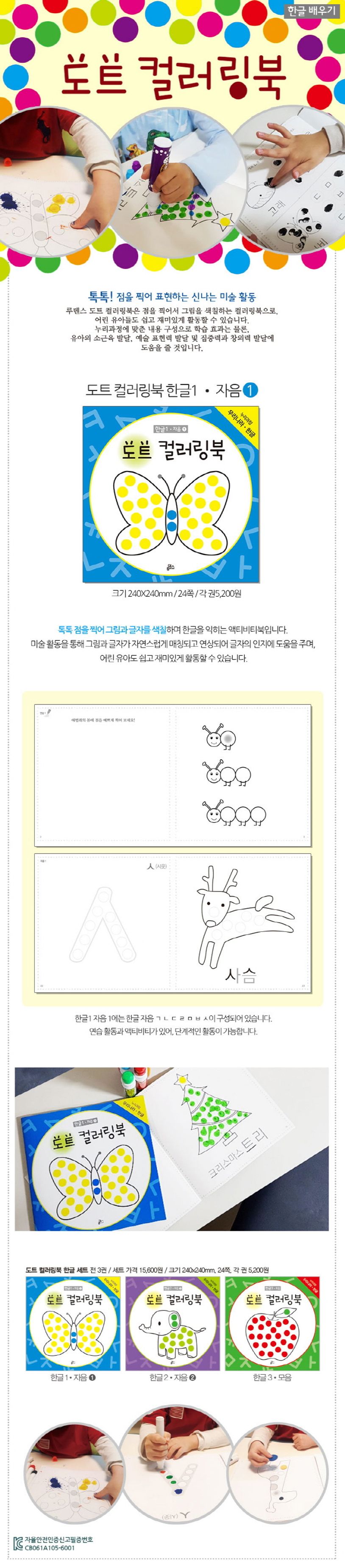 톡톡 점을 찍어 그림과 글자를 색칠하며 한글을 익히는 액티비티북입니다.