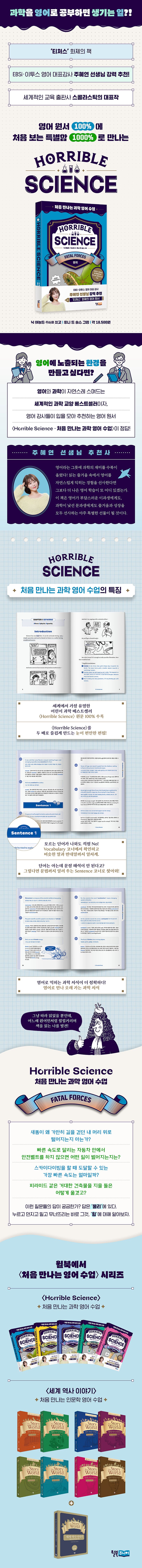 30개국 전 세계 어린이들에게 열광적 반응을 얻은 초대형 과학 베스트셀러 〈Horrible Science〉. 필수 과학 지식을 쉬운 영어와 유머러스한 문체로 담은 책으로, 영미권 학생들의 필독서이자 한국에서는 최고의 영어 교육가들이 입을 모아 추천하는 원서로 명성이 드높다.