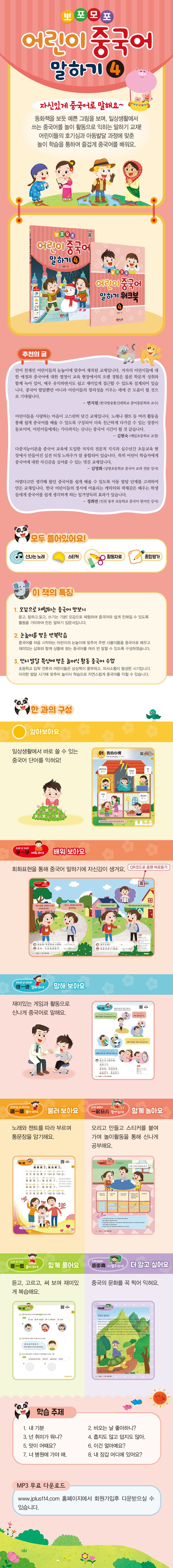 동화책을 보듯 예쁜 그림을 보며, 일상생활에서 쓰는 중국어를 놀이 활동으로 익히는 말하기 교재! 어린이들의 호기심과 아동발달 과정에 맞춘 놀이 학습을 통하여 즐겁게 중국어를 배워요