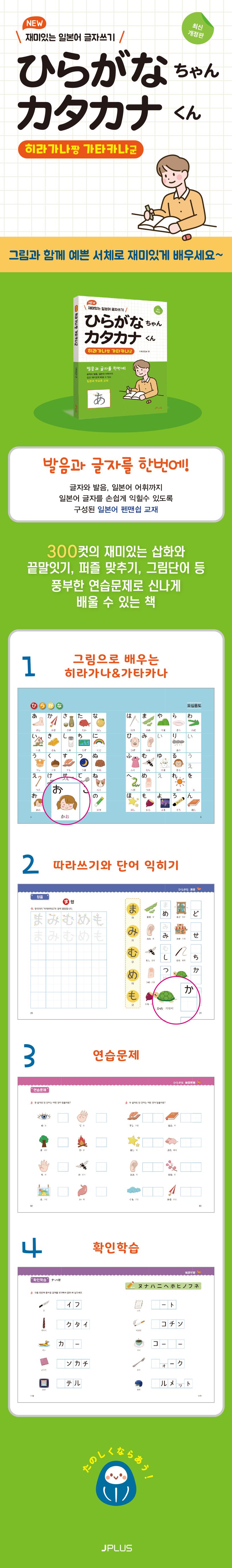 New 히라가나짱 가타카나군은 300컷의 삽화와 예쁜 손글씨 서체, 교과서 글씨 따라쓰기를 동시에 익힐 수 있도록 편집한 개정판 도서입니다.