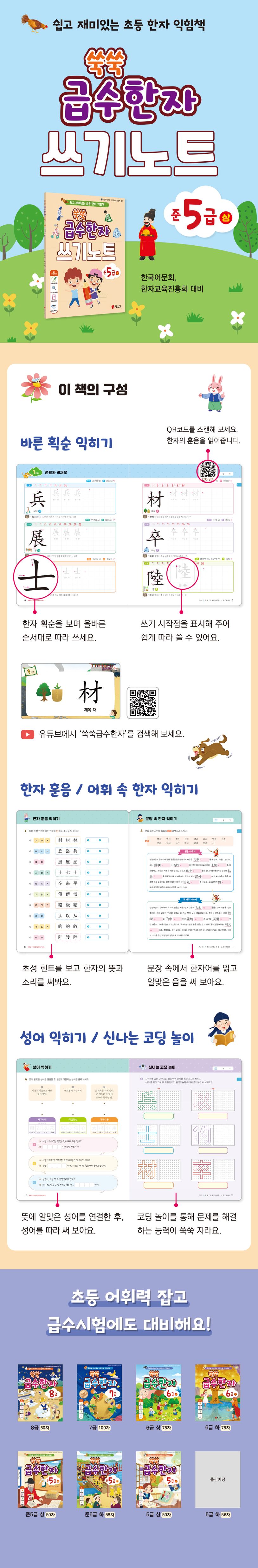 〈쑥쑥 급수한자 준5급 상 쓰기노트〉와 함께 재미있게 배워요.