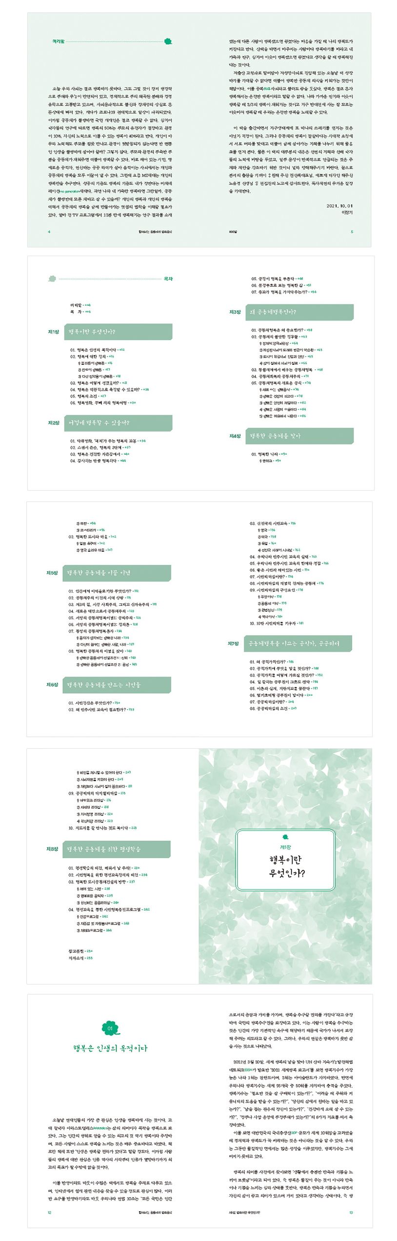 본 서는 평생을 공동체가치실현을 위해 힘써왔고 앞으로도 그렇게 애쓰고자 노력하는 이창기 교수(대전대 행정학과 객원교수)가 집필한 책이다. 『함께하는 공동체의 행복공식』은 개인의 행복은 말할 것도 없고 공동체의 행복을 위해 우리가 어떻게 노력해야 할 것인지의 해답을 담담하게 풀어가고 있다. 저자는 ‘당신의 공동체는 행복하십니까?’라는 질문을 던진 뒤 그 답으로 행복은 건강이 최고요, 안전이 제일이며, 사랑이 으뜸이고, 여유가 있으면 금상첨화라는 공식을 내놓았다. 또한 요즘 MZ세대가 소확행, 워라밸이라고 하면서 행복도 성공도 자신만의 기준을 따로 갖고 있는 데 대해 일부 동의하면서도 공동체가 불행한데 혼자 행복할 수 있느냐고 반문한다.
