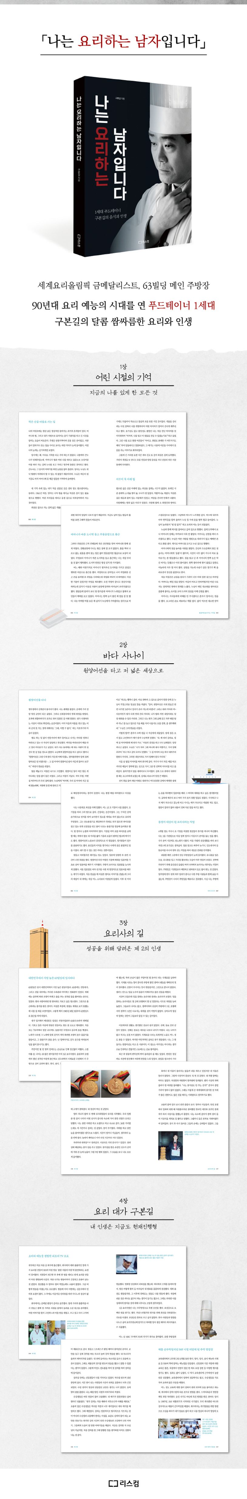 프랑크푸르트 세계요리올림픽 금메달 수상 이후 63빌딩 양식부 메인 주방장을 역임하면서 각종 방송 활동 등으로 대중에게 널리 알려진 구본길 조리장. 푸드테이너 1세대로 불리며 40여 년간 서양요리 전문가로 활동해온 그가 오랫동안 간직해온 자신의 이야기를 한 권의 책으로 엮었다. 요리사가 되기 전 외항선 생활을 하며 겪었던 처절했던 삶, 요리의 대가로 불리기까지 하루 네 시 간씩 잠자며 밑바닥부터 일구어낸 제2의 인생, 방송 활동을 하며 겪은 재미있고 다양한 경험들 을 이 책에 풀어냈다. 요리하는 남자 구본길의 맛깔나는 요리와 인생 이야기를 만나보자.