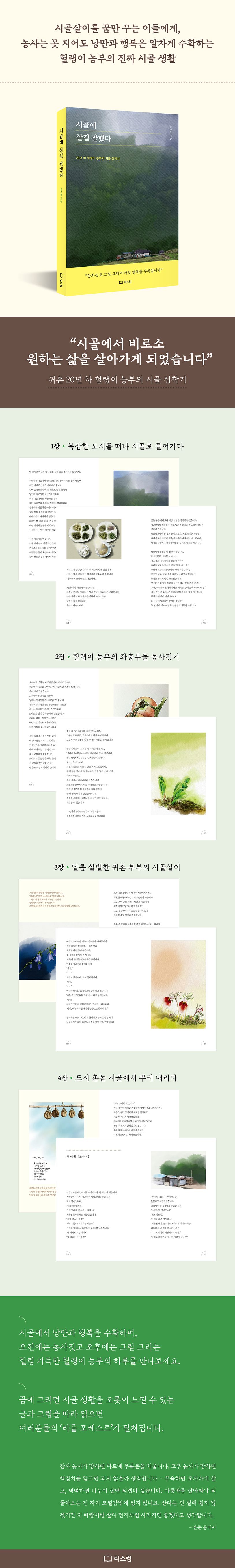 눈코 뜰 새 없이 바쁜 도시 생활에 지친 현대인. 지금 당장 떠날 수 없어서 시골 생활을 꿈만 꾼다면, 헐랭이 농부가 전하는 진짜 시골 생활 이야기와 함께 해보는 건 어떨까.
