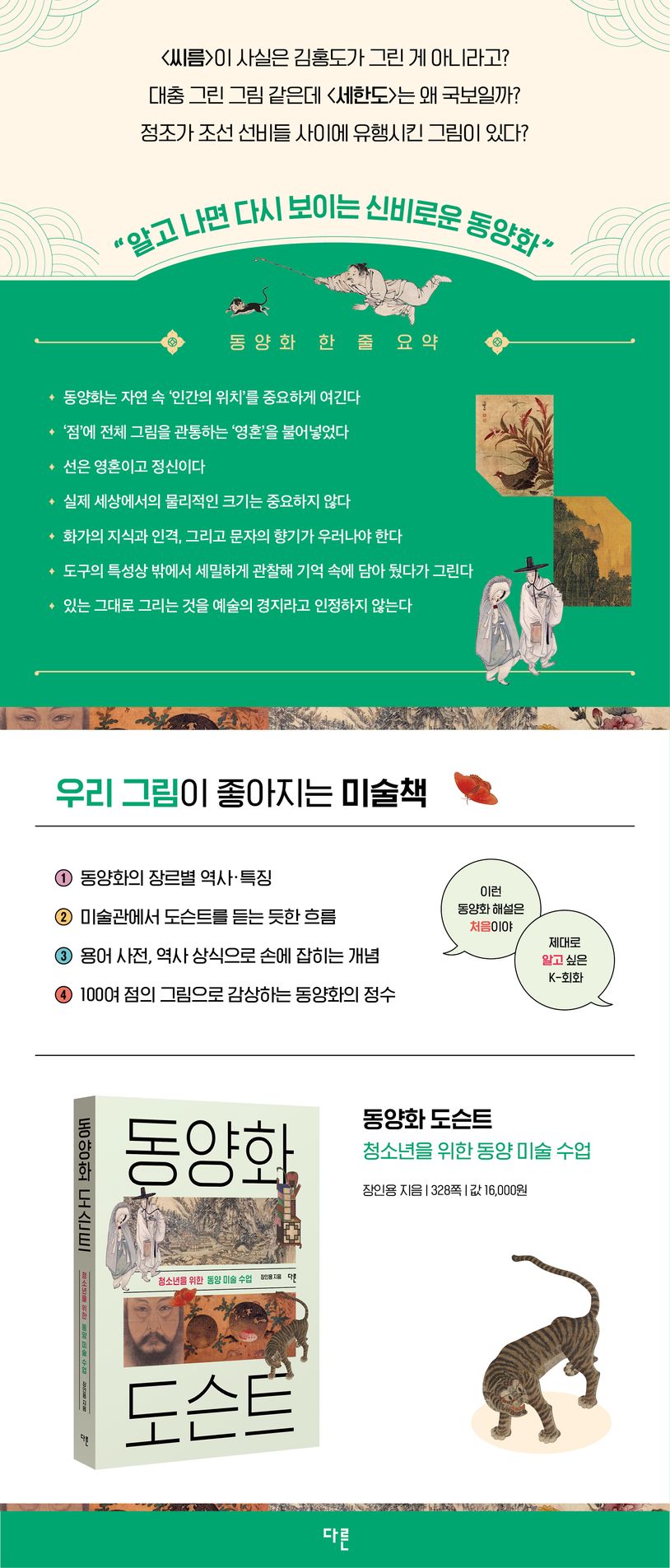 그동안 동양화는 서양화에 비해 한물간 구닥다리 취급을 받았습니다. 지난 시대의 낡은 유물처럼 여겨 제 가치를 인정받지 못했습니다. 하지만 동양화의 내용은 깊고 풍부하며, 그림의 기교도 우리가 상상하는 것보다 훨씬 뛰어납니다. 동양화를 좋아하고 즐길 이유는 얼마든지 있지만 우리가 몰랐을 뿐입니다.