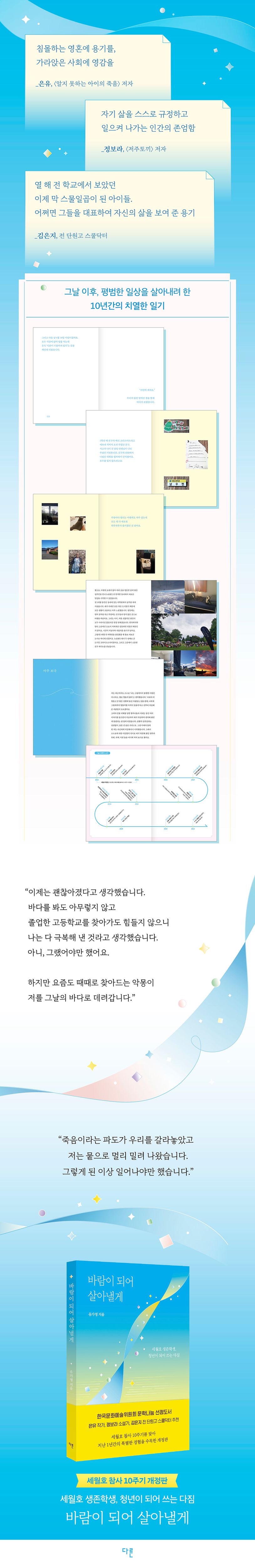 4·16 세월호 참사 10주기를 맞아, 저자가 지난 1년간 겪은 일들에 감사의 마음을 덧붙여 이 개정판을 펴냅니다. “저와 다르지만, 다른 곳에서 다른 형태로 치열하게 생존을 위해 노력하고 계신 분들께” 이 책의 바람이 가닿길 바랍니다.